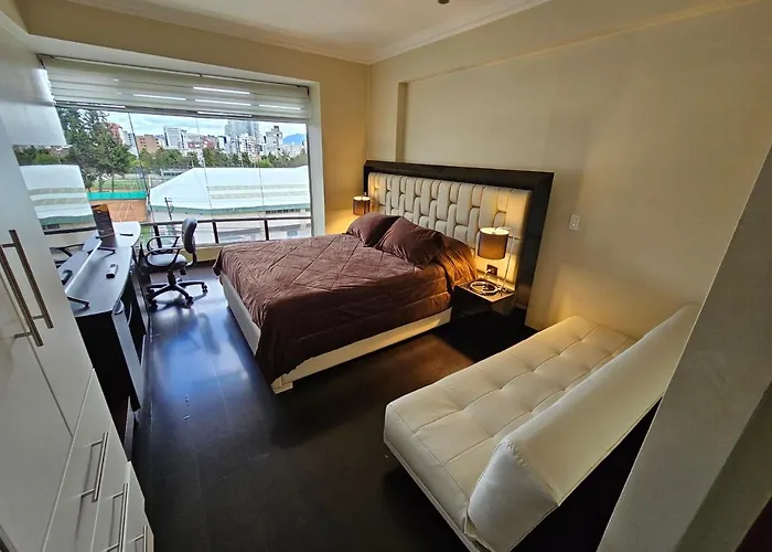 Fornecendo segurança 24 horas e barbeiro, o apartamento Suite De Lujo En Excelente Sector, Netflix, Disney Plus está a 40 km do aeroporto Internacional Quito Mariscal Sucre. A apartamento fica a 7 km de Yaku Museo del Agua, 2.2 km de Parque Metropolitano Guangüiltagua e também perto de Supercines.